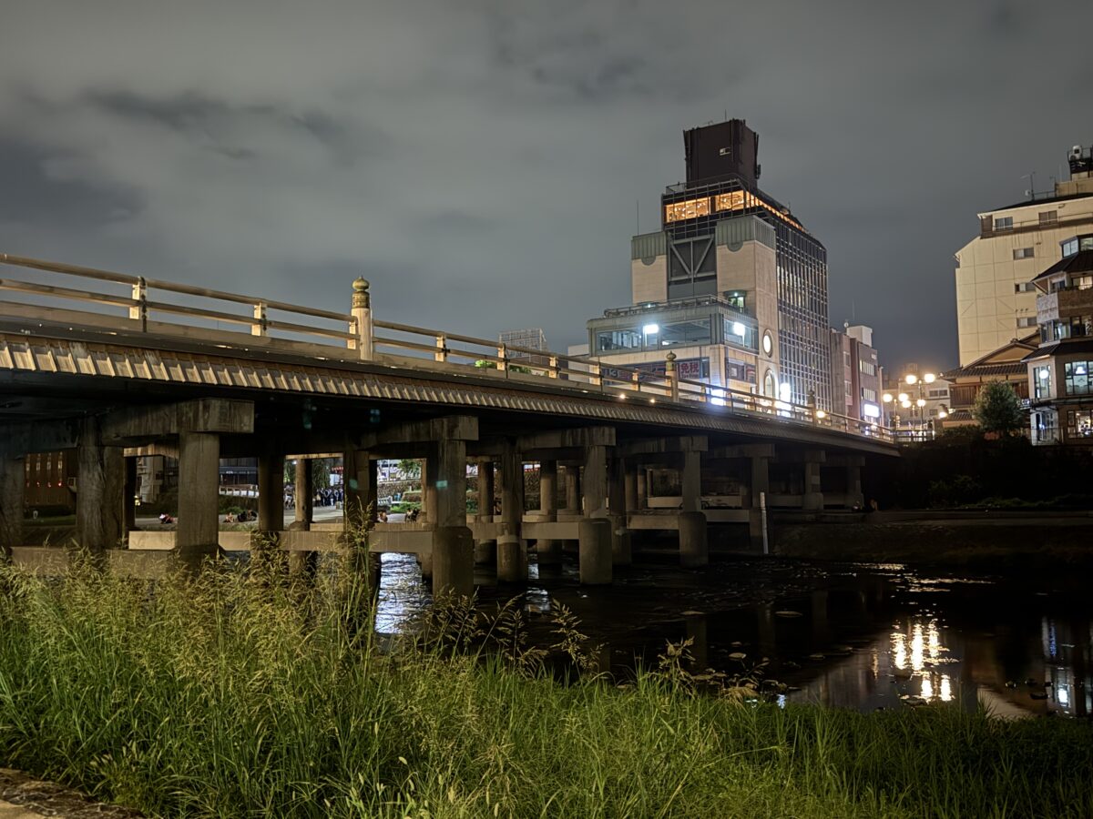 出発地点は三条大橋から。この時間帯はまだ飲み終わりの大学生が多く歩いていました。