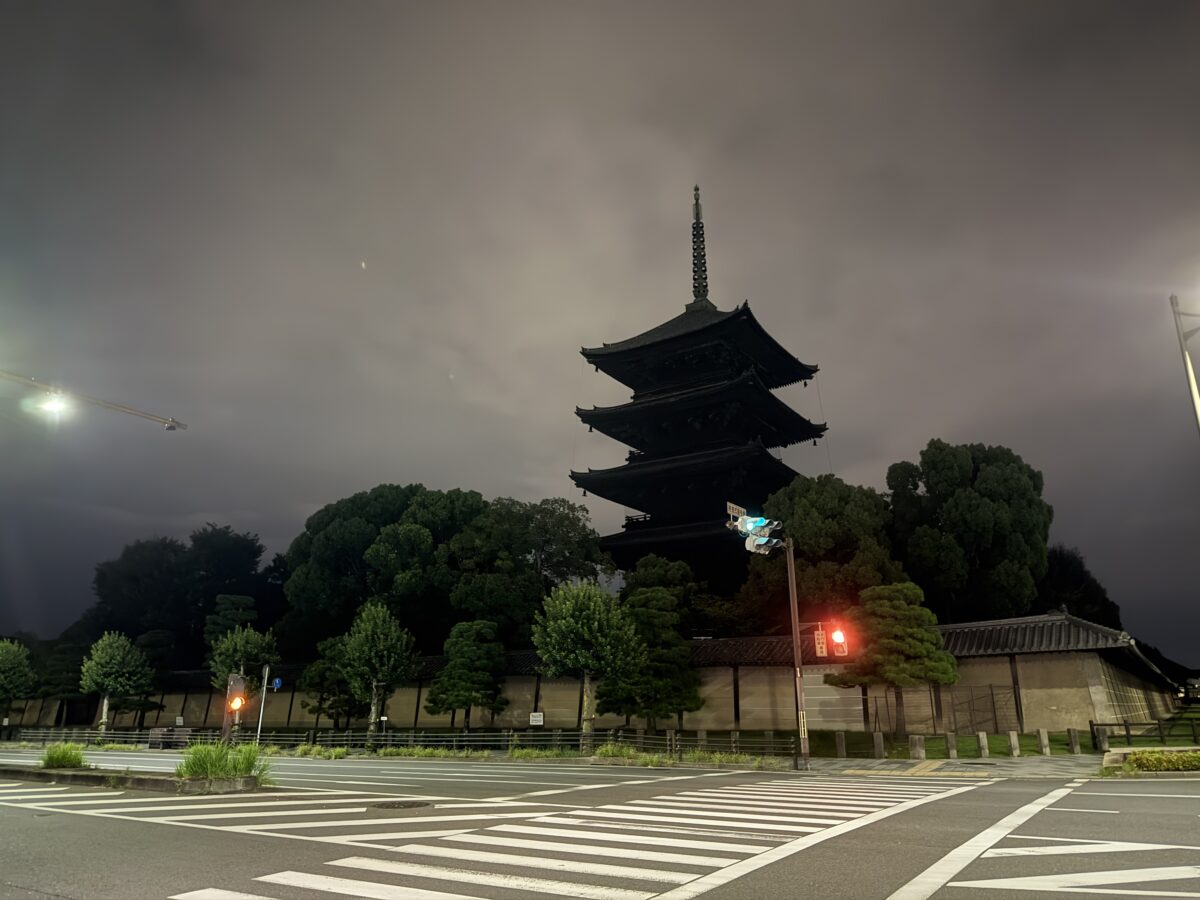 東寺の五重塔が見えてきました。よるの五重塔も存在感があります。