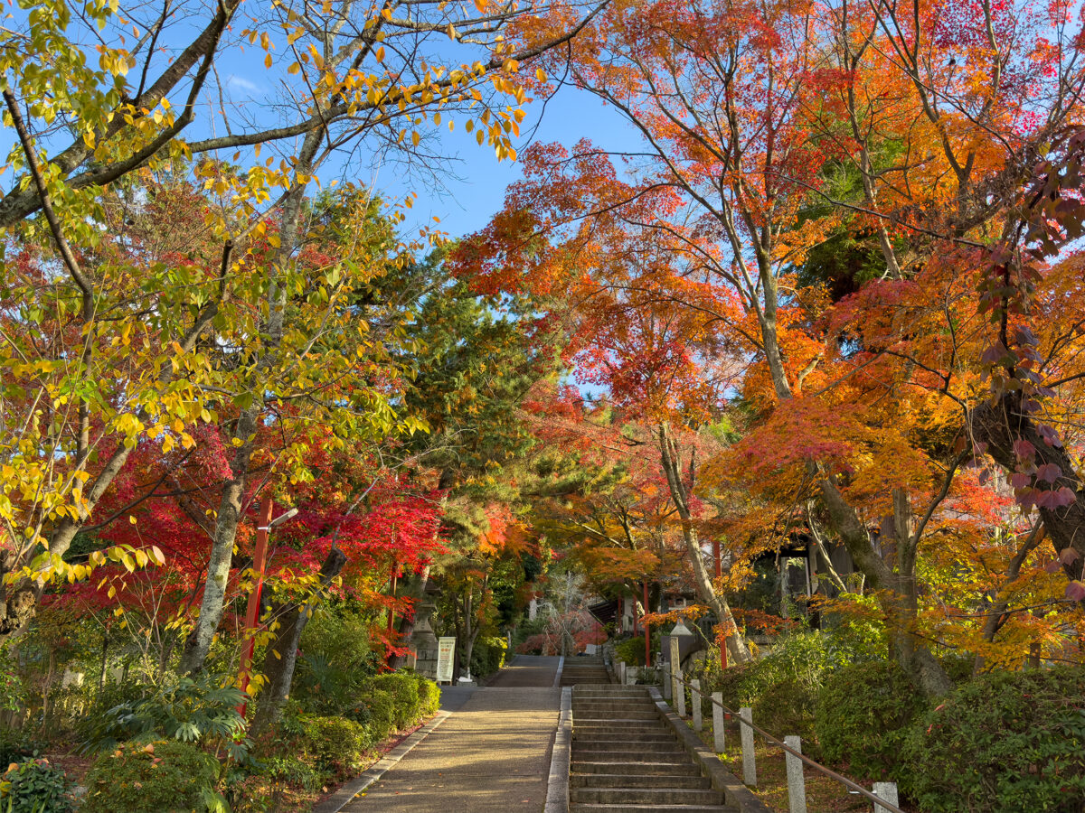 毘沙門堂で有名な紅葉撮影スポットが、無料エリアにある勅使門に続く階段です。 勅使門は天皇または天皇の遣いである勅使しか通ることができない門ですが、階段までは一般人も入ることができます。 毘沙門堂の拝観時間が始まるとこの階段にも人がちらほらやってくるので、無人で撮影するには朝の7~8時の早い時間帯にいきましょう。 紅葉のピークが去り、雨が降った翌日はかなり落葉するので階段に落ちた敷き紅葉が見られます。 毘沙門堂は正式には出雲寺と呼ばれ、天武天皇の勅願により703年に建立。 鎌倉時代に太秦の平等寺、五辻の尊重 ...
