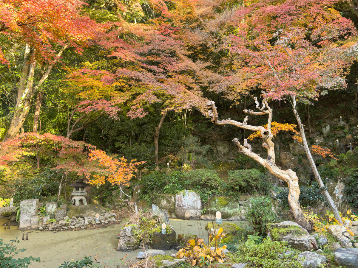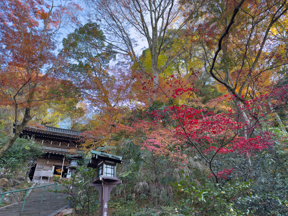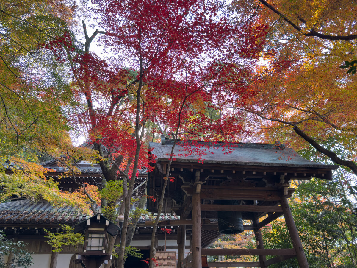 長楽寺は古来から紅葉寺と称され、境内の約20本の紅葉が美しいグラデーションを奏でます。