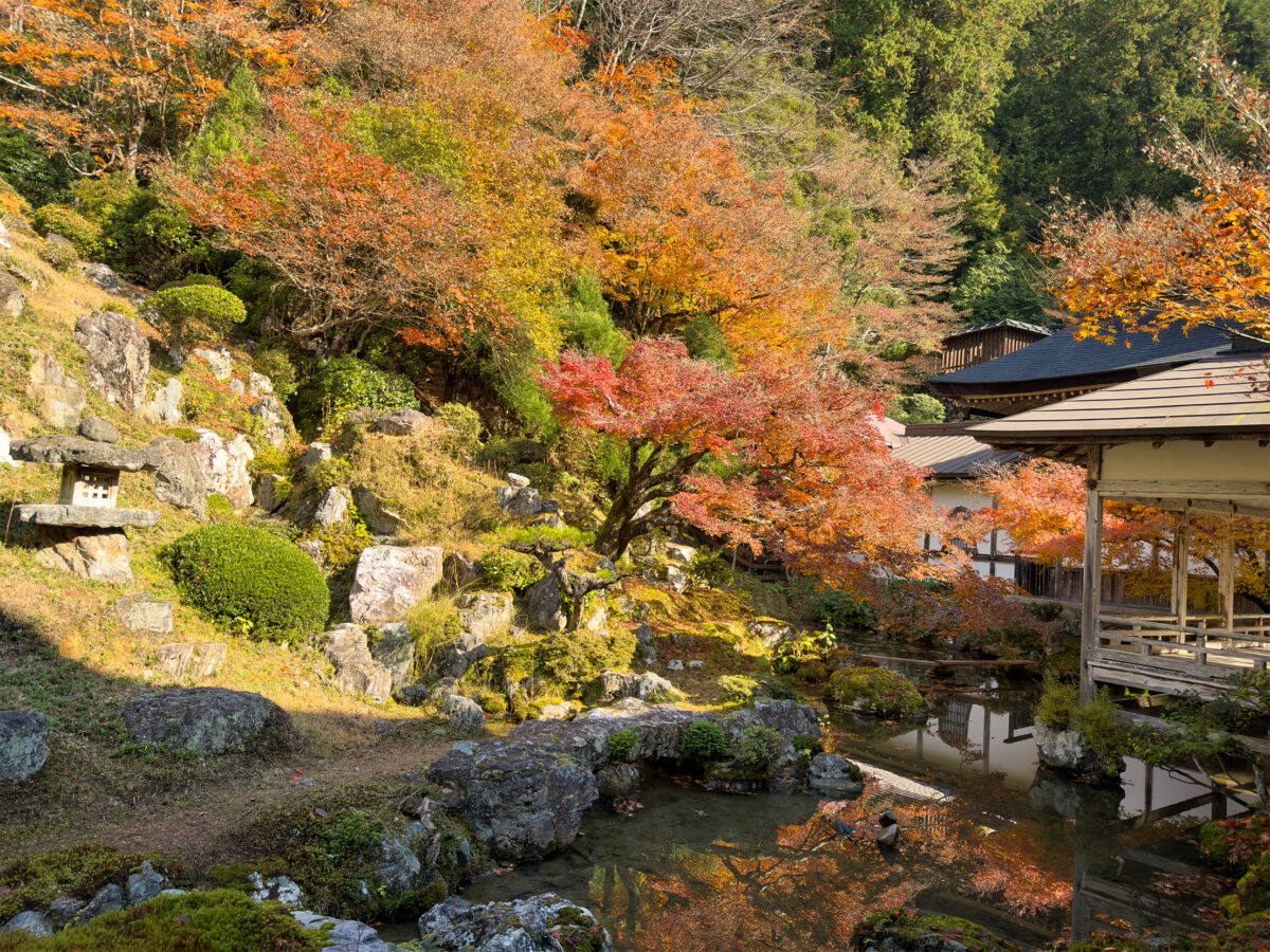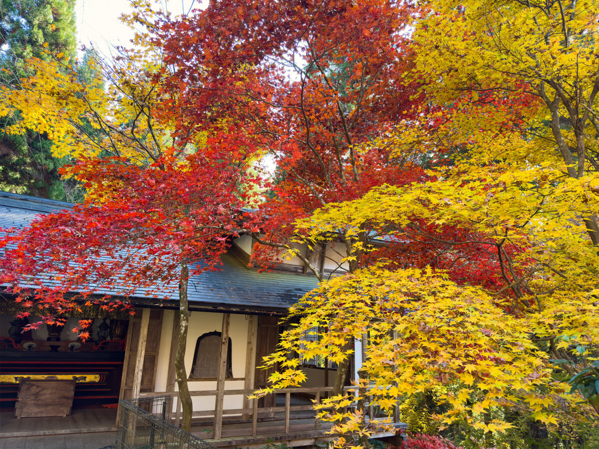 秋には山門周辺、方丈の裏山にある庭園の紅葉を鑑賞することができます。