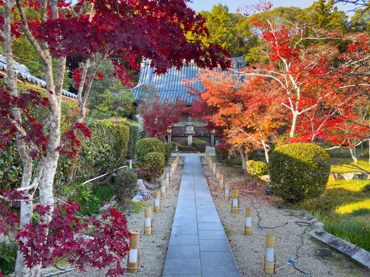 秋には本堂への参道脇、庭園周りが美しく紅葉します。