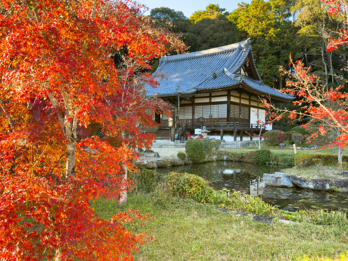 京都府京田辺市の紅葉の名所、大御堂観音寺は真言宗智山派の寺院。