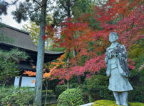 日本昔ばなしでお馴染みの一休さん。 酬恩庵は一休さんが晩年を過ごした地です。 かつては1288年~1293年に建立の妙勝禅寺。その後荒廃しましたが、1456年に一休が妙勝禅寺を再興、草庵の酬恩庵を結んだことから後に一休寺と呼ばれるようになります。 一休の没後は廟所、1504年~1521年に本堂が建立されました。 境内の全体的に紅葉を見ることができ、京都市内より1週間ほど早く見頃を迎えます。 駐車場から境内に向かう道ではさっそく子ども時代の一休さん?が出迎えてくれます。 山門からは境内の紅葉が溢れ出す感じに ...