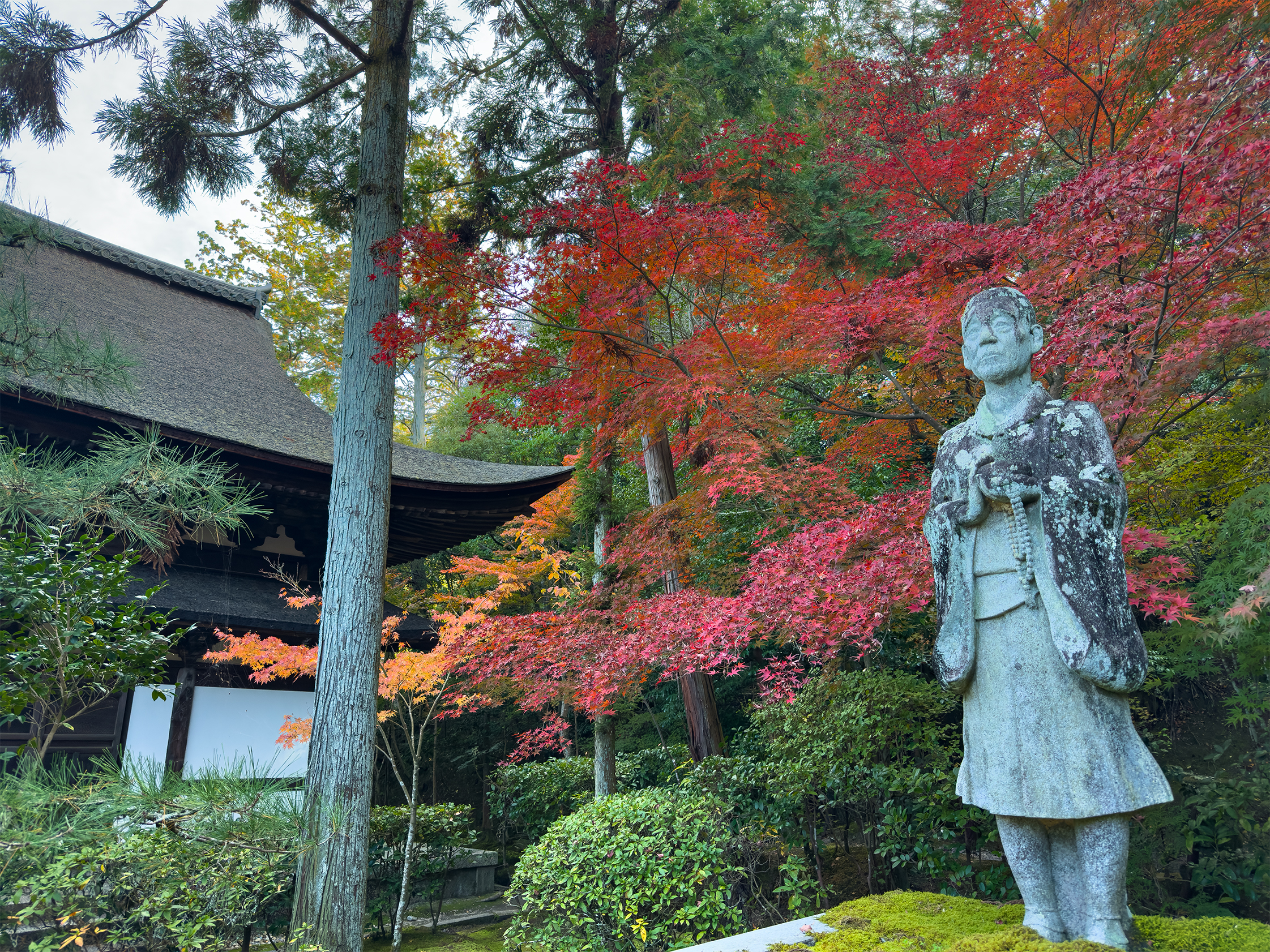 京都市の北区西賀茂に位置する神光院は弘法大師空海が自ら彫った弘法大師像を本尊とする真言宗の単立寺院。 東寺、仁和寺とともに京都三弘法として親しまれます。 幕末期の歌人、大田垣蓮月は75歳からここで隠棲しており、茶室の蓮月庵が現存しています。 秋の時期は紅葉が見られるのですが、神光院はよくある観光サイトや雑誌には出てこない穴場のスポット。 今回訪れた2025/11/18は境内に誰一人いない中、美しい紅葉を独占することができました。 こちらは南の駐車場から見る山門。山門周りはすでに7~8割程度の紅葉でしたが色 ...