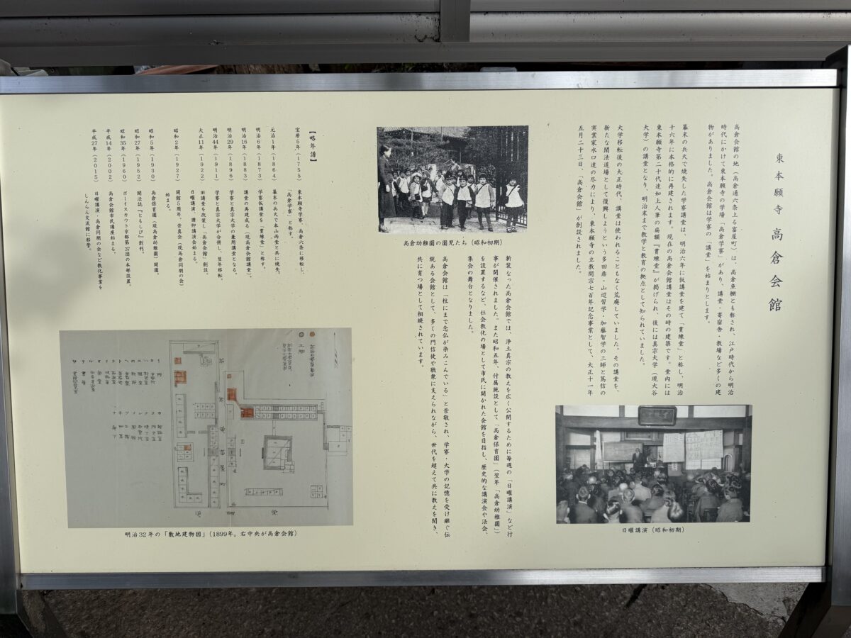 かつてはこの地に東本願寺の学寮が存在し、明治には大谷大学の講堂として使われてきました。