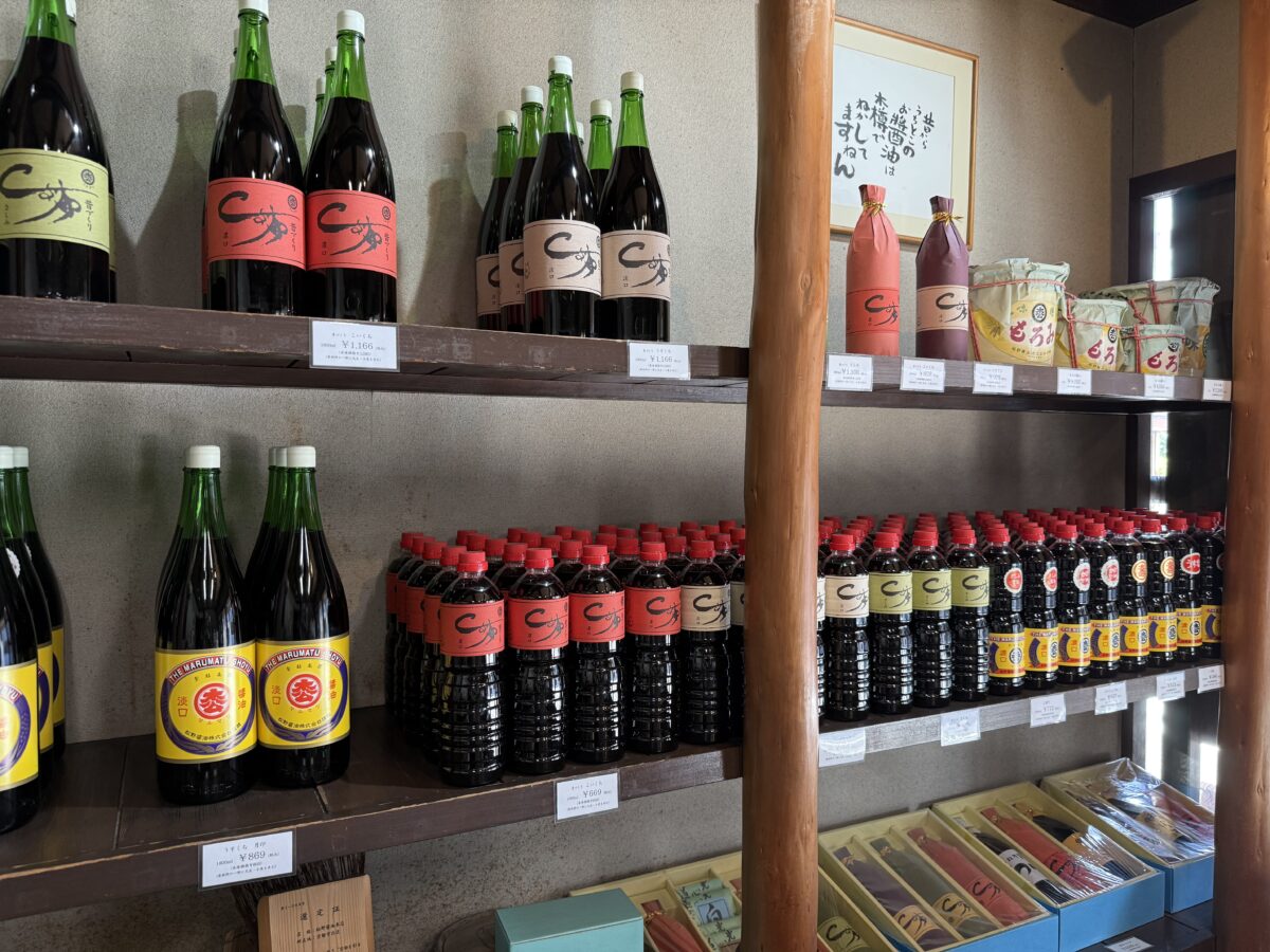 店内には醤油のほか、ポン酢や味噌、もろみなど様々な商品が陳列されています。