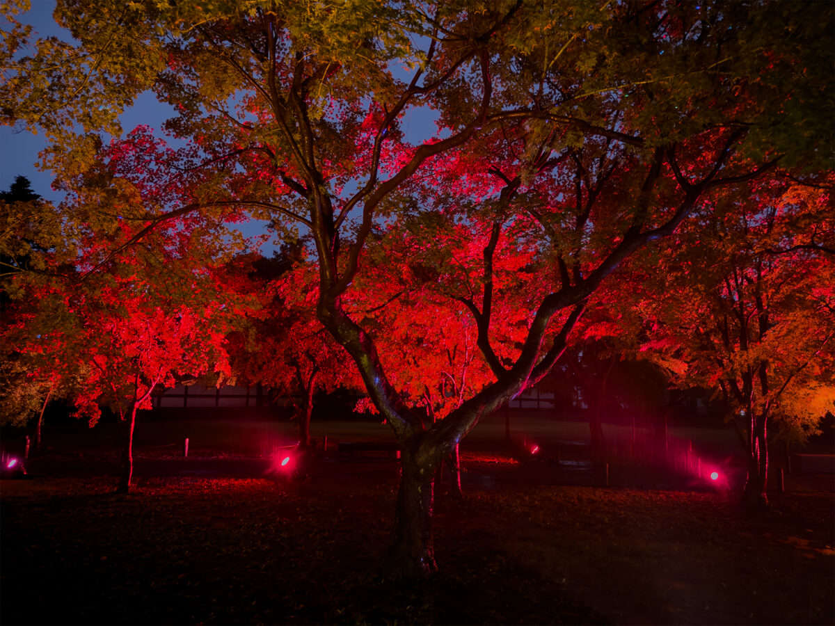 10/31の初日は紅葉はまだまだでしたが、赤色のライトによって紅葉しているように感じます