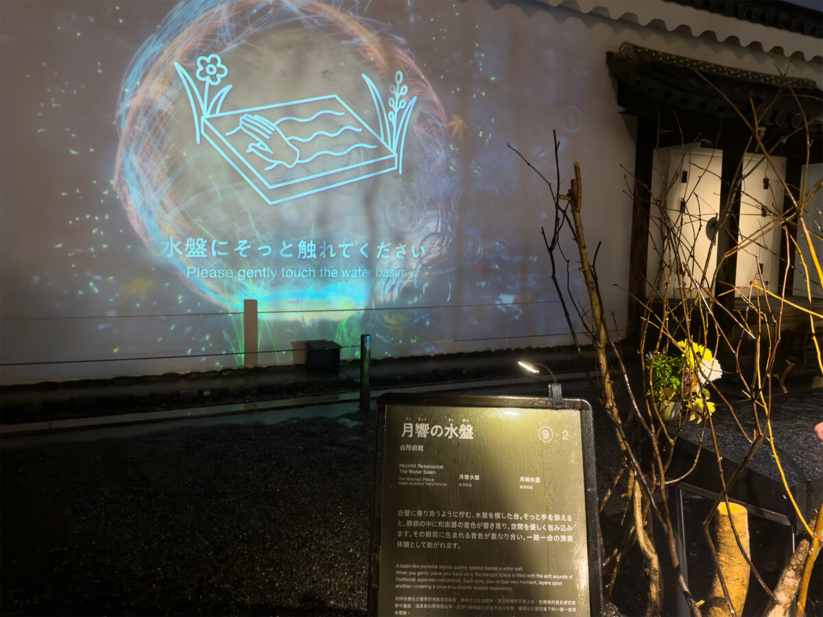 水盤に手を触れると透明度のある和楽器の音色が広がります