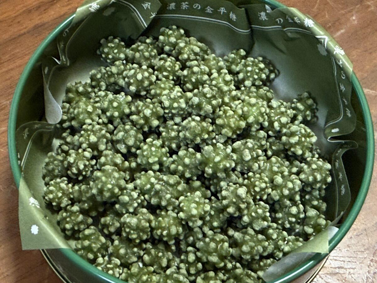 濃茶味は見た目に色の濃淡があり、今までの金平糖とは異なります。サイダーやいちごのような甘さがあるわけではありませんが、上品なお茶の香りが中から溢れ出してきました。