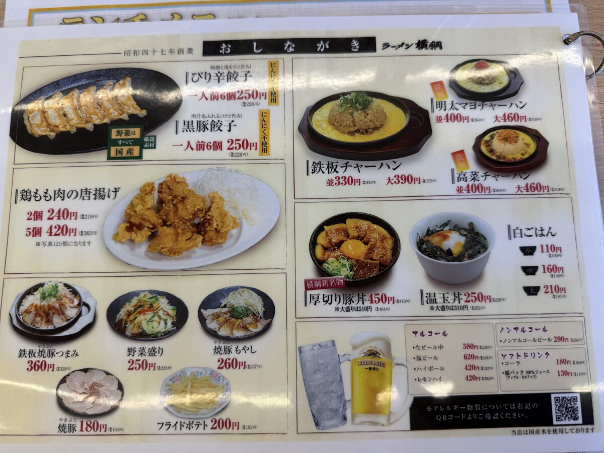 ラーメン横綱は価格の安さが素晴らしく、まろやかな豚骨醤油で毎日食べたくなるような味わいだった。